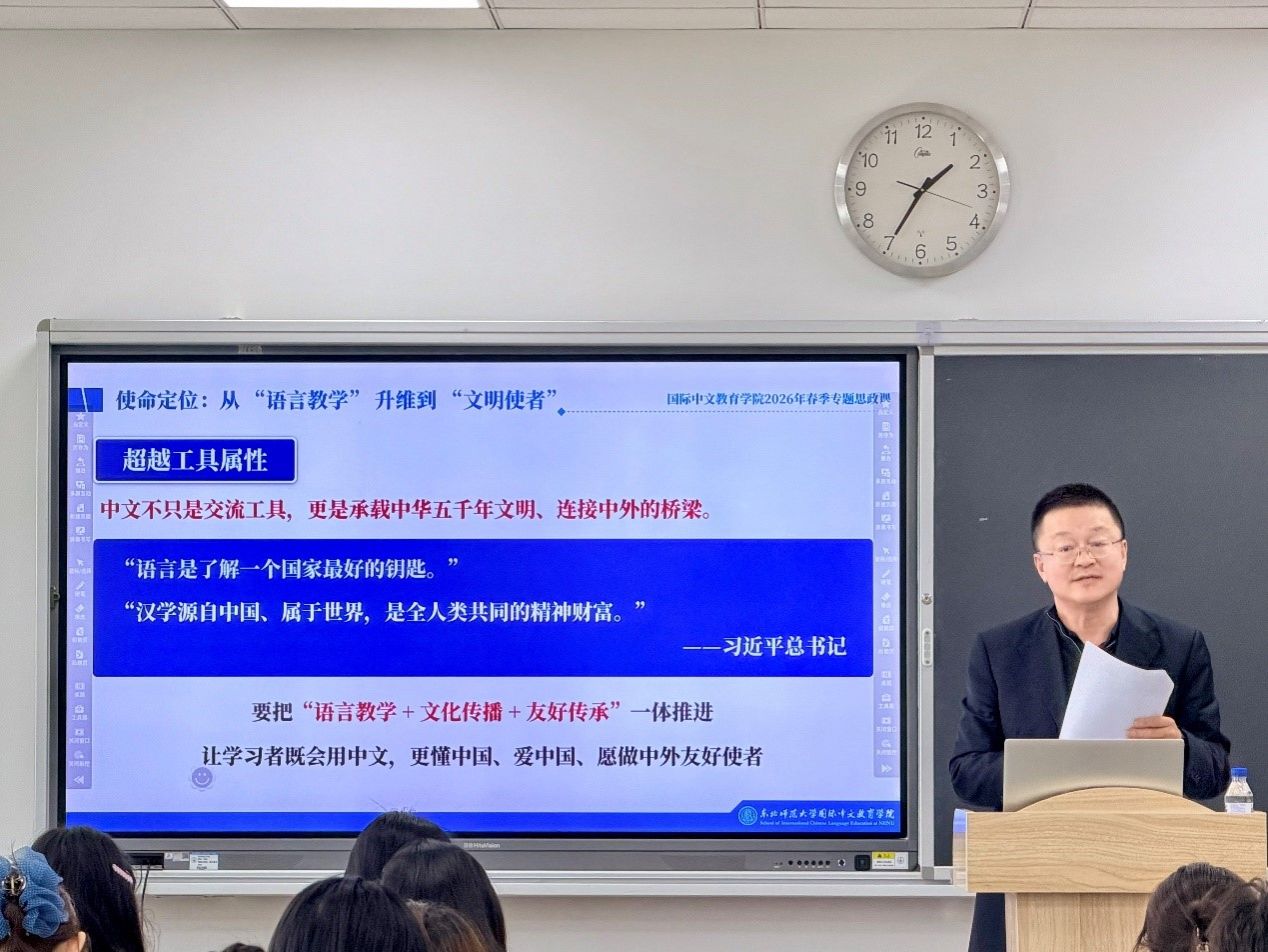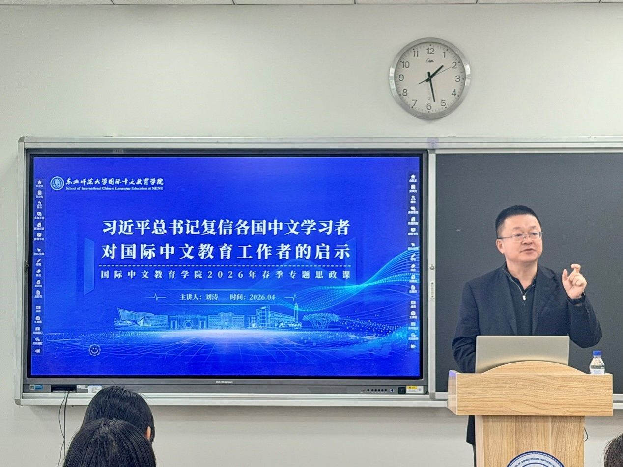 为深入学习贯彻习近平总书记关于教育、文化传播与国际交流的重要论述精神,引领青年学子深刻认识时代使命与专业责任,学院于4月8日举办2026年春季学期院长思政课暨第六期“菁英工作坊”活动。学院院长刘涛以“习近平总书记复信各国中文学习者对国际中文教育工作者的启示”为题,为全院研究生带来了一场内涵丰富、立意深远的专题思政课。